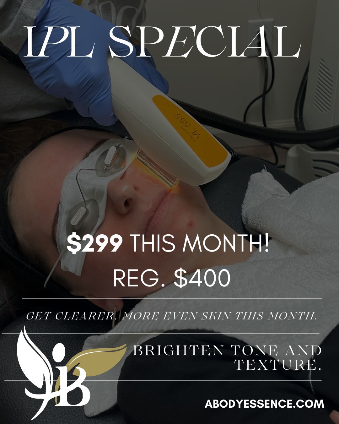 Get clearer, more even skin with our IPL treatment special this month. This month, it's specially-priced at $299 (Reg. $400!)