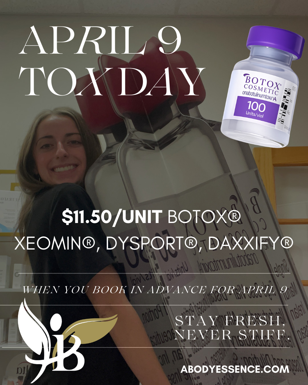 Don't miss our Neurotoxin Day happening April 9! Book your appointment in advance for April 9 and get your Botox, Xeomin, Dysport, or Daxxify wrinkle-ridding treatment specially-priced at $11.50 per unit. All treatments are by appointment only and spaces are limited. Please book early!